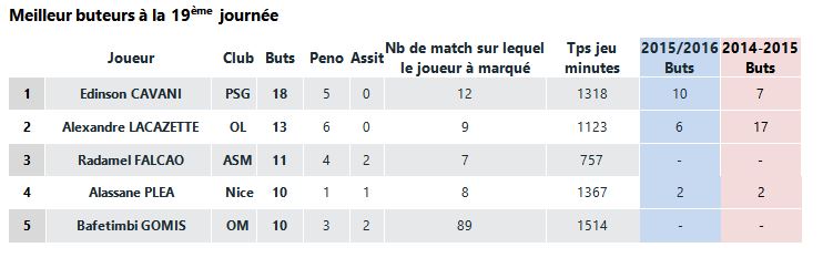 Il est suivi du lyonnais, meilleur buteur de la L1 sur une année civile, Alexandre Lacazette. Ce dernier pointe à la 11ème place du classement européen des buteurs (15 buts en 20 matchs), devancé par Falcao, 10ème avec 15 buts en 18 matchs.