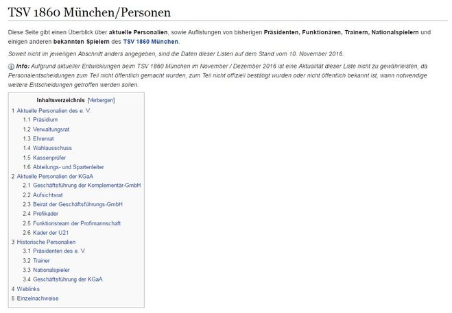 « En raison des changements récents au TSV 1860 München en Novembre / Décembre 2016, nous avons décidé de ne pas assurer que cette liste est parce que les décisions relatives au personnel ne sont pas en partie rendues publics, ont été en partie pas officiellement confirmée ou ne sont pas connues du public lorsque de nouvelles décisions nécessaires sont prises ».
