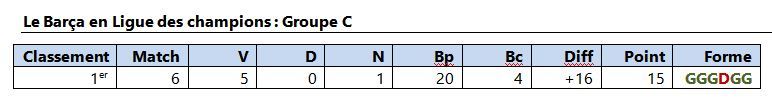 Résultat : Qualification , le PSG termine 2ème du groupe derrière le Barça