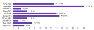 Nominés : PEPE, Sergio RAMOS, Jérôme BOATENG, Thiago SILVA, Leonardo BONUCCI, Girgio CHIELLINI, Gérard PIQUÉ, Laurent KOSCIELNY, Mats HUMMELS, Diego GODIN