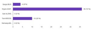 Nominés : Sergio BUSQUETS, N’golo KANTÉ, Xabi ALONSO, Toni KROOS, Nemanja MATIC