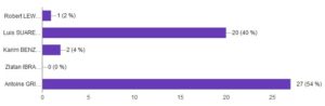 Nominés : Robert LEWANDOWSKI, Luis SUAREZ, Karim BENZEMA, Zlatan IBRAHIMOVIC, Antoine GRIEZMANN