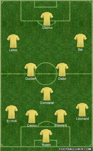 Milieux de terrain : Dabo, Gonzalez, Gbegnon, Bai, Guibert, Sakhi