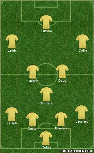 Robin, Epassy-Mboka (2e gardien), Léonard, Diawara, Cestor, El Hriti, Gonzalez, Dabo, Guibert, Gboho, Lemb, Sissoko, Rougeot, Meyer, Gbegnon, Sakhi, Colin ; absents : Baï (dos), Focki(choix du coach)