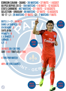 Cette saison, replacé dans l’axe, Cavani est en Beast Mode. Il a certes débuté sa saison difficilement, mais il a ensuite enchaîné les buts. Actuellement, le Matador en est à 37 buts en 36 matchs. Il est à seulement 2 buts de dépasser son record personnel sur une saison. Espérons déjà qu’il égale ses 38 buts ce mercredi contre la Barça. Un but de l’attaquant, signifierait quasiment la qualification du PSG pour les 1/4 de finale.