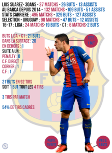 Actuellement, Suarez en est a 26 buts et 10 assists en 36 matchs. A l’image de Barcelone, il est moins bien cette saison, enfin moins bien par rapport à ses temps de passage de la saison dernière. Car il en est actuellement à un geste décisif par match, ce qui reste énorme.