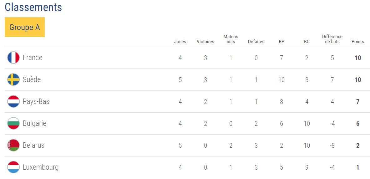 En début de soirée, la Suède, s’est largement imposée contre le Belarus 4-0. Les Suédois reviennent ainsi à égalité des bleus dans ce groupe A. Les deux équipes possèdent 10 points.