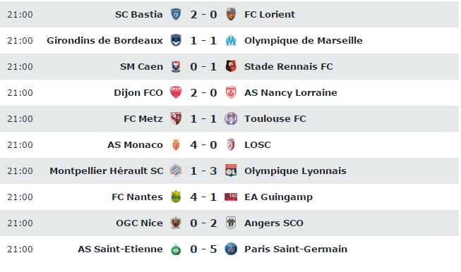 Les résultats de la 37e journée