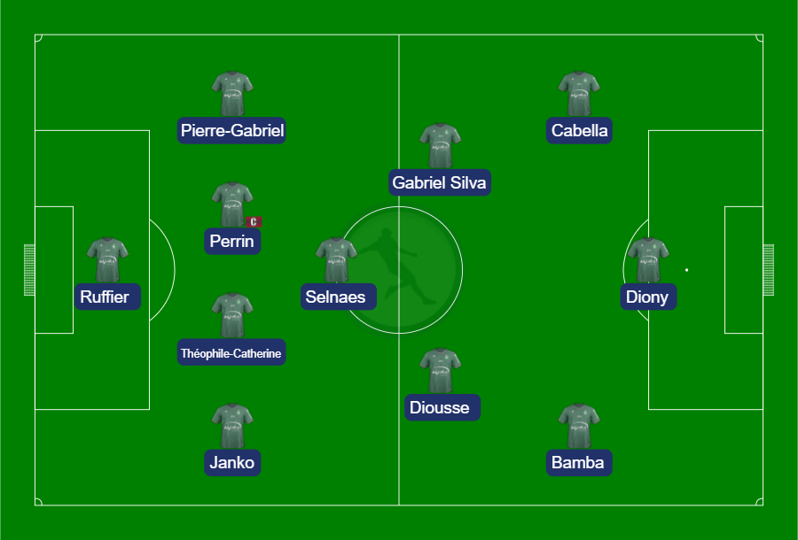 Défenseurs : Théophile-Catherine, Katranis, Lacroix, Gabriel, Mbengue, Janko, Perrin, Pierre-Gabriel