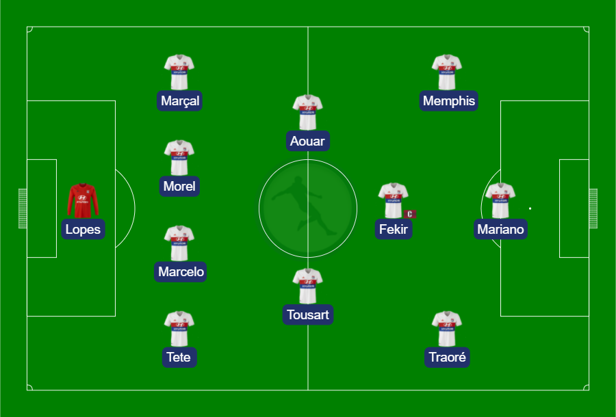 Attaquants : Cornet, Fekir, Mariano, Memphis, Myziane, Traoré