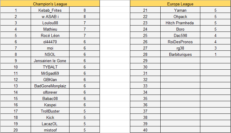 Félicitations à Kebab_Frites et w ASAB i qui gagnent le titre de meilleur pronostiqueur de la semaine.