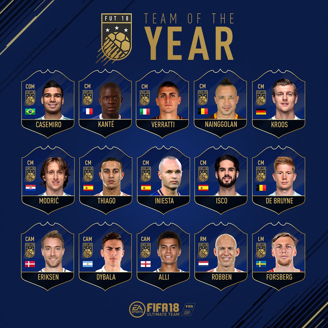 L’Équipe de l’année sera officiellement annoncée à partir du 15 janvier, avec la mise à disposition d’éléments Joueurs dans les packs, pendant une durée limitée, pour FIFA 18 Ultimate Team et FIFA Mobile.