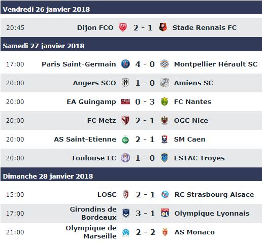 Le LOSC, grâce à sa victoire à domicile contre Strasbourg (2-1), laisse la place de barragiste à Troyes qui a perdu à Toulouse 1-0. L’ASSE se relance à domicile avec une victoire 2-1 sur le SM Caen. Angers s’impose contre Amiens 1-0 et revient à égalité de point avec son adversaire. Le roue semble tourner pour le dernier, le FC Metz, en effet, la lanterne rouge s’est imposer chez lui face à Nice grâce à un doublé de Nolan Roux, qui tourne bien en ce moment -je sais, c’est facile- avec 4 buts sur les quatre dernières journée.