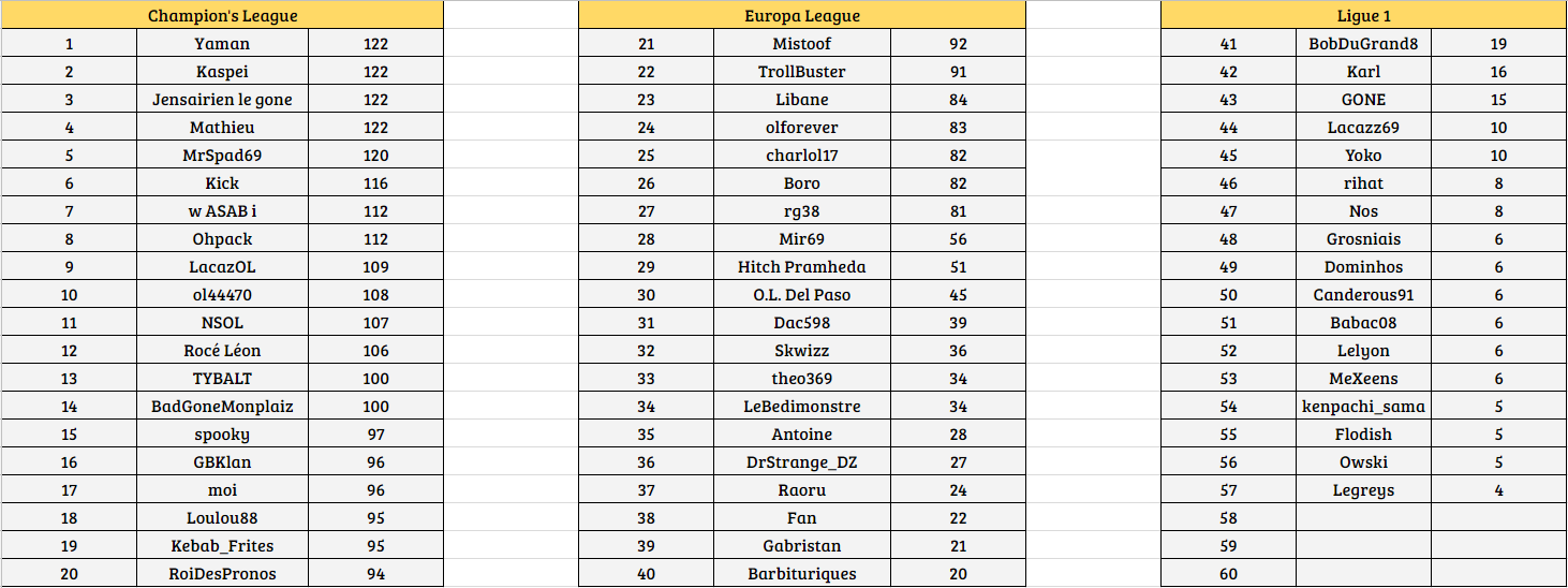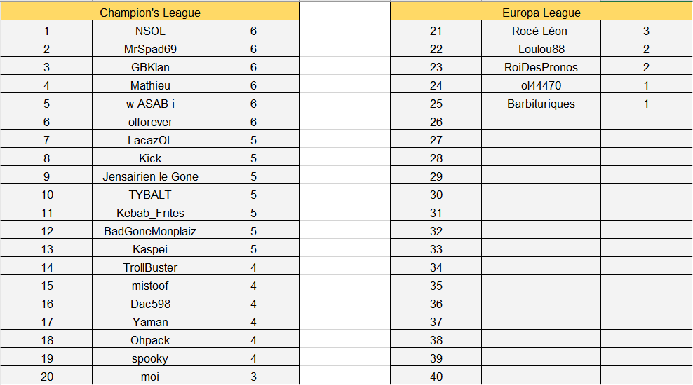 Félicitations à NSOL, MrSpad69, GBKlan, Mathieu, w ASAB i et olforever qui gagnent le titre de meilleur pronostiqueur de la semaine. Bravo à eux.