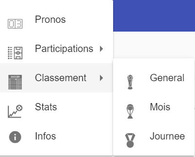 Ensuite, la fonctionnalité suivante est la consultation des différents classements des pronostics (général, mensuel et de la journée précédente). Pour cela, il suffit de cliquer sur le menu, d’aller choisir « Classement » puis de choisir le type de classement.