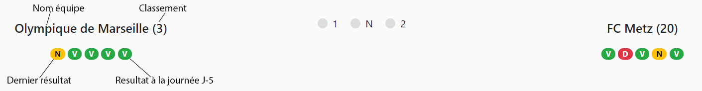 La page de pronostic est la page d’accueil de l’application, pour chaque match vous aurez quelques informations pour vous aider à faire votre pronostic comme le classement et la dynamique.