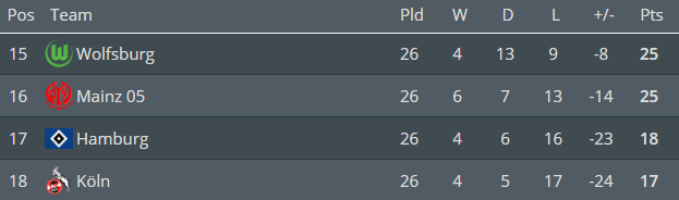 En Allemagne, on tremble de voir un club historique être relégué en deuxième division, le Hambourg SV. Le club de la deuxième plus grande ville allemande est en grande difficulté en championnat et voit les fantômes de la relégation les hanter. Une situation malheureusement amorcée depuis plusieurs saisons.