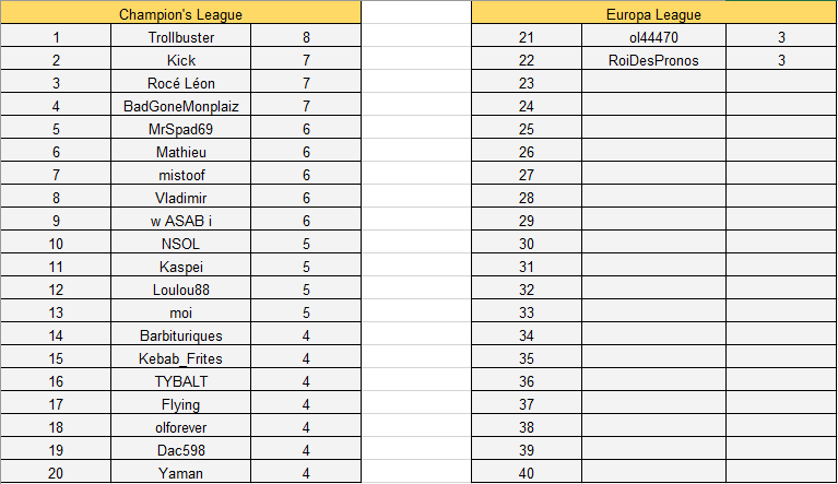 Félicitations à Trollbuster qui gagne le titre de meilleur pronostiqueur de la semaine. Bravo à lui.