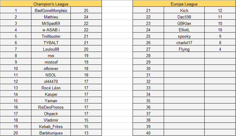 Félicitations à BadGoneMonplaiz qui gagne le titre de meilleur pronostiqueur de la semaine. Bravo à lui.