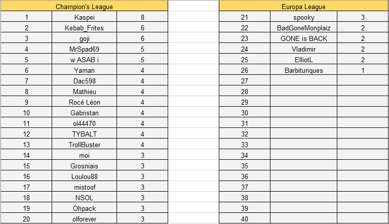 Félicitations à Kaspei qui gagne le titre de meilleur pronostiqueur de la semaine. Bravo à lui.