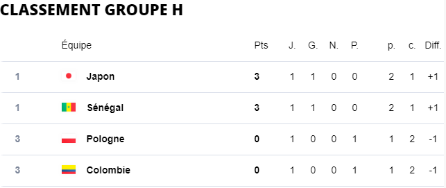 Alors que la Pologne et la Colombie faisaient figures de têtes d’affiche du groupe H, les deux sélections ont raté leur entame de compétition en s’inclinant contre le Sénégal et le Japon (1-2). Dès lors, ces nations n’ont plus le droit à l’erreur et ne devront pas perdre à nouveau si elles désirent rejoindre le tableau final de la compétition.