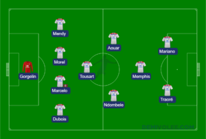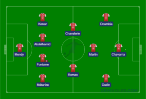Lorient : Petkovic – Mendes, Sainati, Saad, Le Goff – Lemoine, Wadja -Cabot, Claude-Maurice, Wissa – Hamel