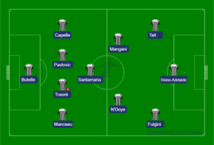 Dijon : Runarsson – Rosier, Aguerd, Lautoa, Haddadi – Amalfitano, Abeid – Loiodice, Sliti, Sammaritano – Tavares