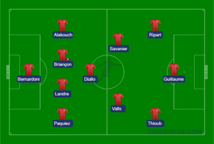 Guingamp : Johnsson, Rebocho, Sorbon, Eboa Eboa, Traoré, Blas, Deaux, Benezet, Thuram, Rodelin, Roux