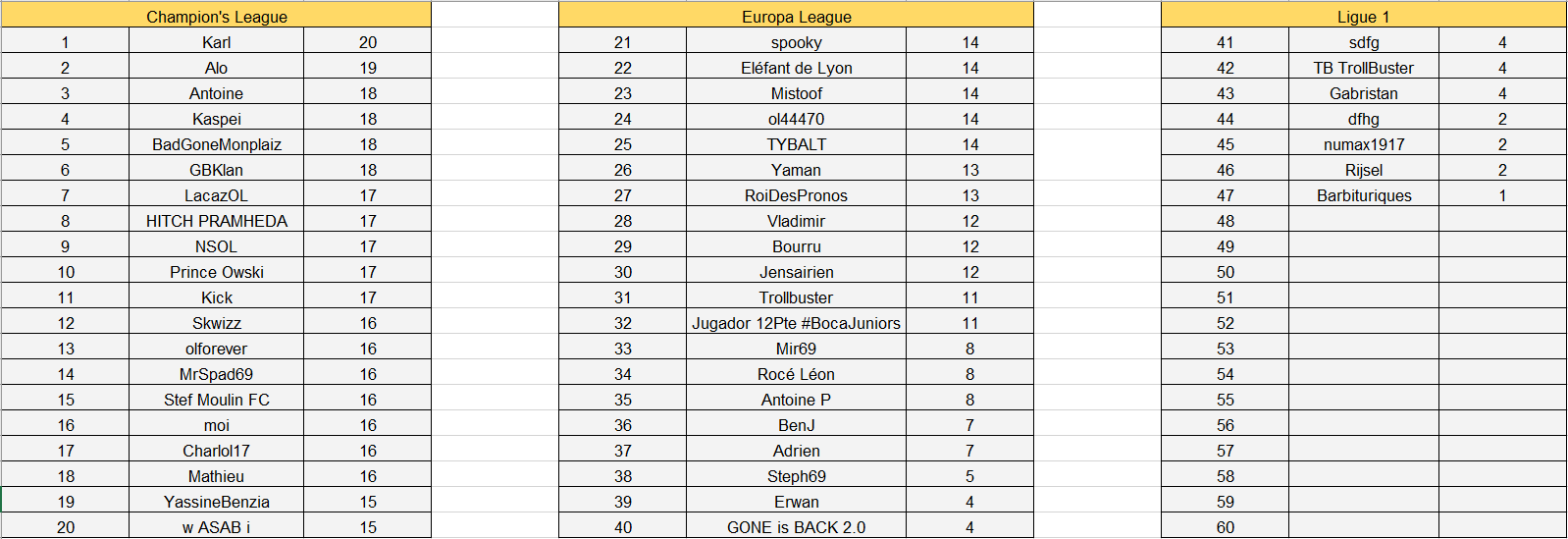 Félicitations à Karl qui est en tête du classement général.