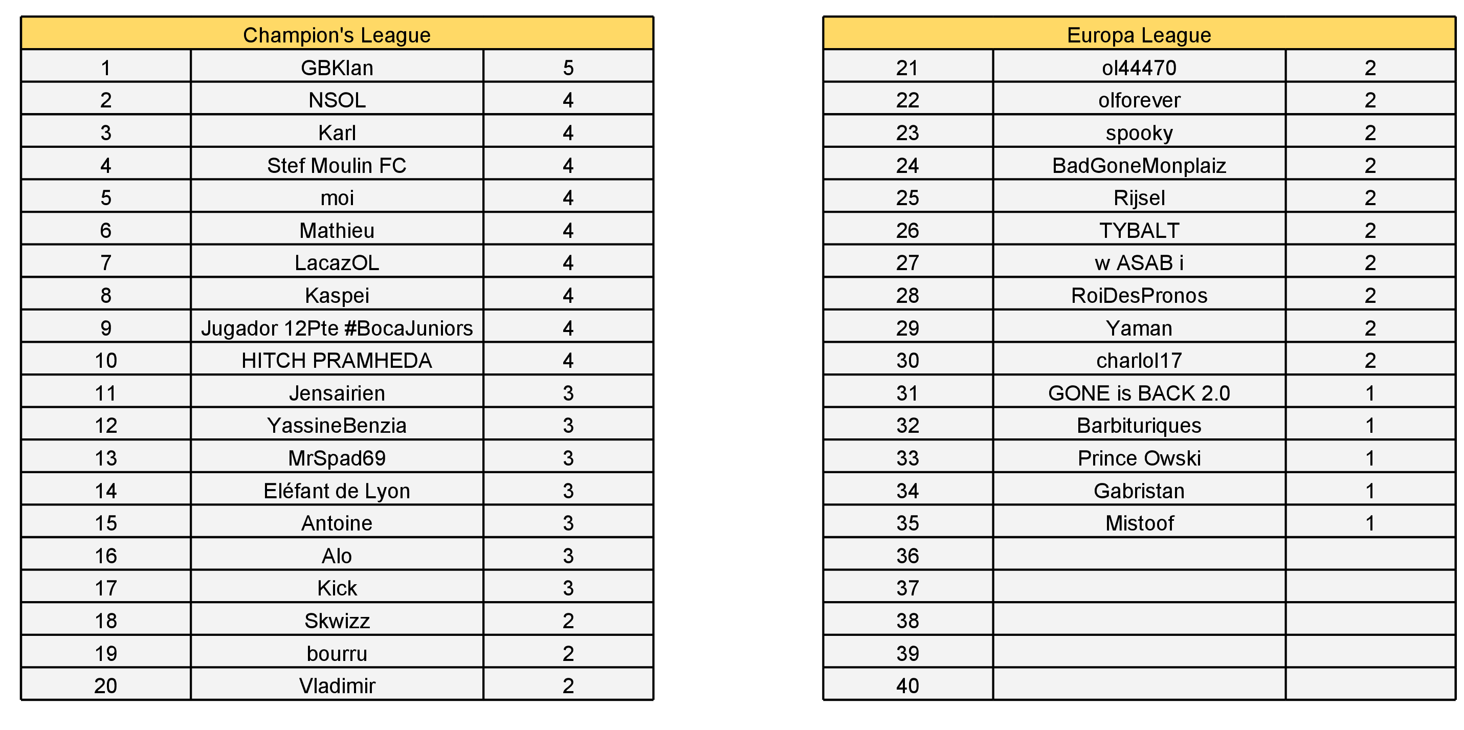 Félicitations à GBKlan qui gagne le titre de meilleur pronostiqueur de la semaine.