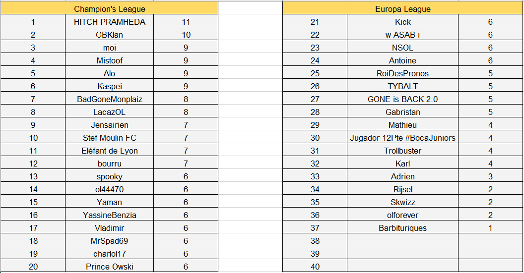 Vous pouvez dès maintenant effectuer les pronostics de la sixième journée en cliquant sur ce lien.