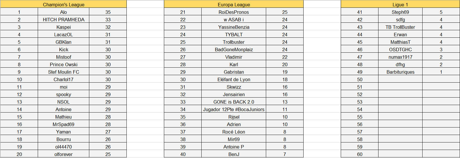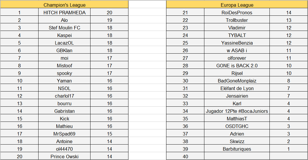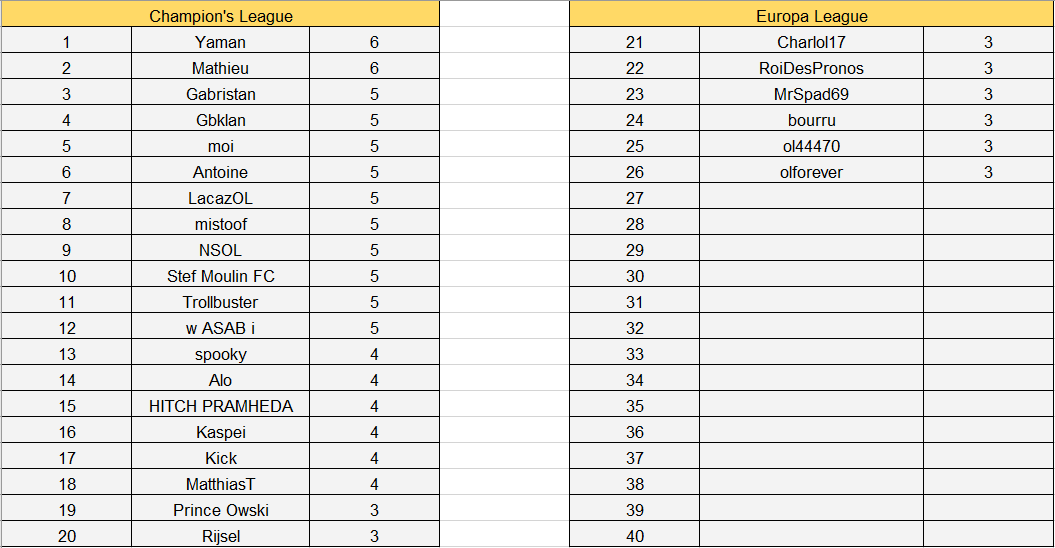 Félicitations à Yaman et Mathieu qui gagnent le titre de meilleur pronostiqueur de la semaine.