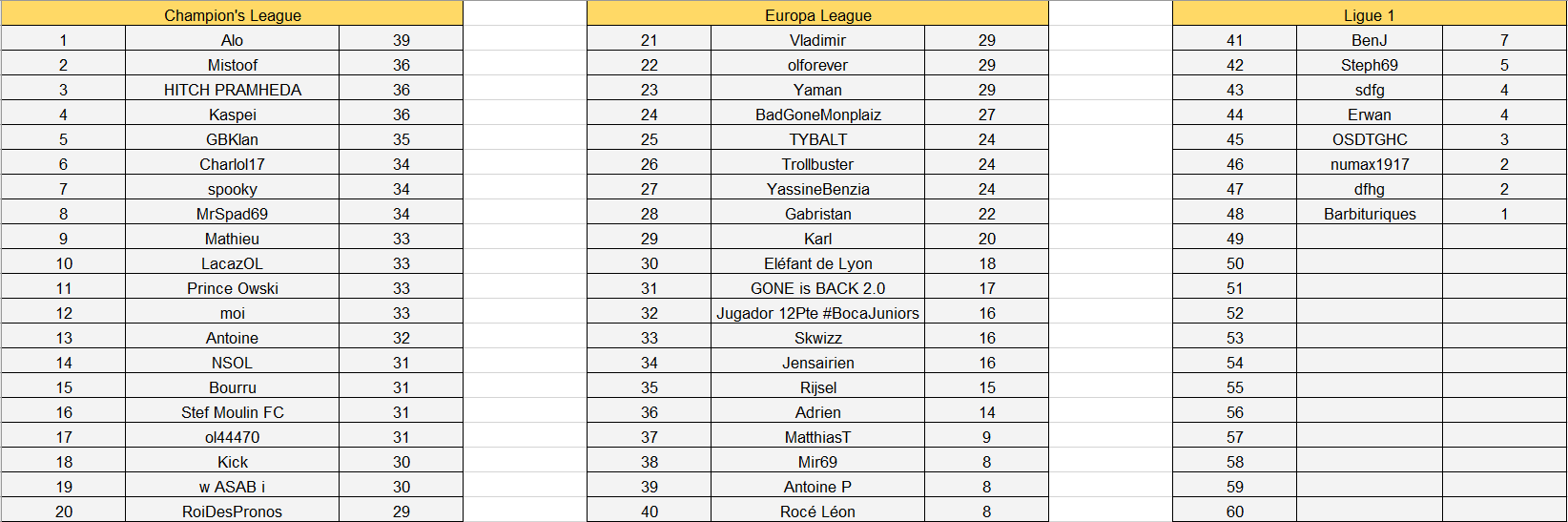 Félicitations à HITCH PRAMHEDA, Alo et Mistoof qui le titre de meilleur pronostiqueur du mois de Septembre.