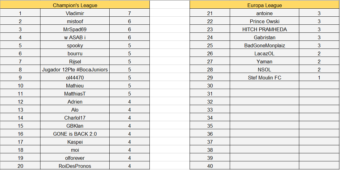 Félicitations à Vladimir qui gagne le titre de meilleur pronostiqueur de la semaine.