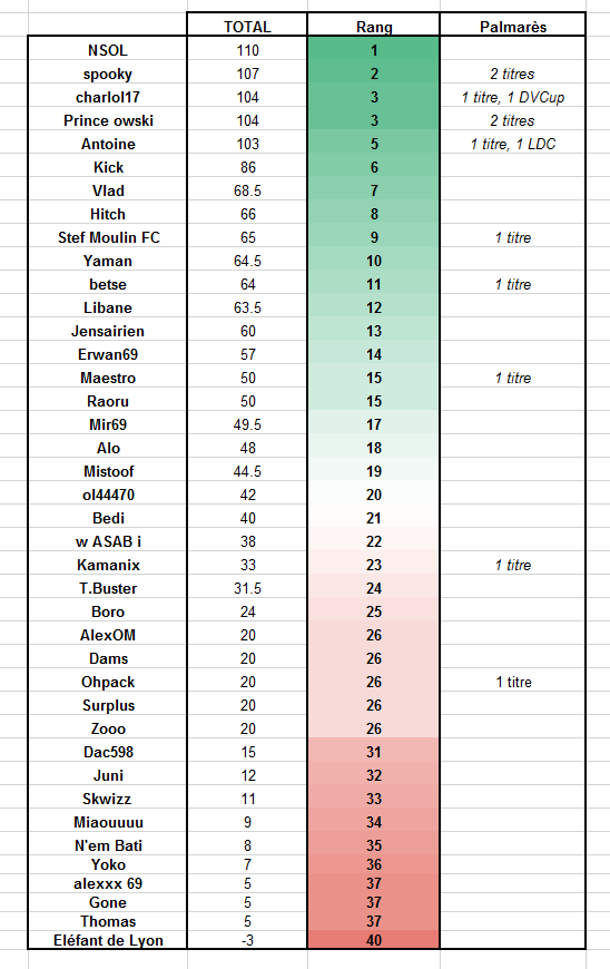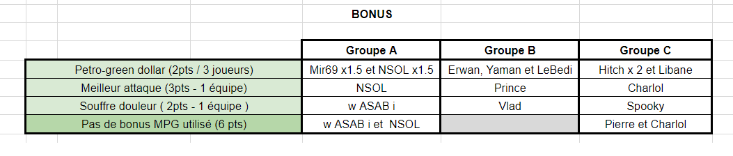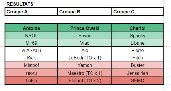 - Le Bedi et Maestro sont bannis pour 1 session de jeu et prennent une sanction de 10 points au classement global.
