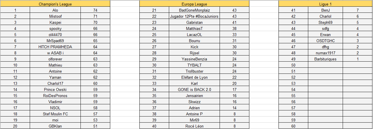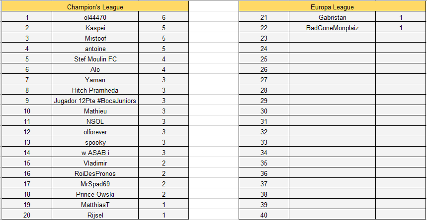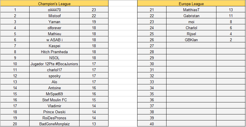 Rappel : les pronostics pour la prochaine journée ainsi que les différents classement sont disponibles sur le lien (qui est toujours le même) dès la fin du dernier match de la journée.
