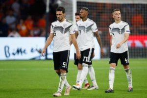 Aujourd’hui, Joachim Löw tente le coup une deuxième fois en écartant les cadres et en faisant appel à la génération médaillée d’argent aux Jeux Olympiques de Rio 2016, rejointe par quelques éléments champions d’Europe espoirs 2017. Cela donne une équipe composée à 80% de jeunes joueurs issus de la Bundesliga. C’est par exemple le cas pour les deux latéraux de Leipzig (Klostermann et Halstenberg), ou encore Amiri et Koch.