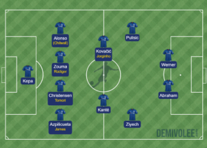 Le problème majeur de cette composition est qu’elle condamne Christian Pulisic au banc. Inconcevable tant le potentiel footballistique et économique de l’international américain (21 ans) pèse dans la balance. Pour lui trouver une solution, il faudra donc se montrer plus créatif et sortir du cadre du 4-3-3 pour un 4-4-2, qu’il soit en losange ou à plat. Et cela tombe bien, puisque Werner se montre plus convaincant dans une double pointe. L’animation entière de l’équipe serait alors à revoir, mais pour avoir le luxe d’admirer Abraham et Werner en même temps, le jeu pourrait en valoir la chandelle.