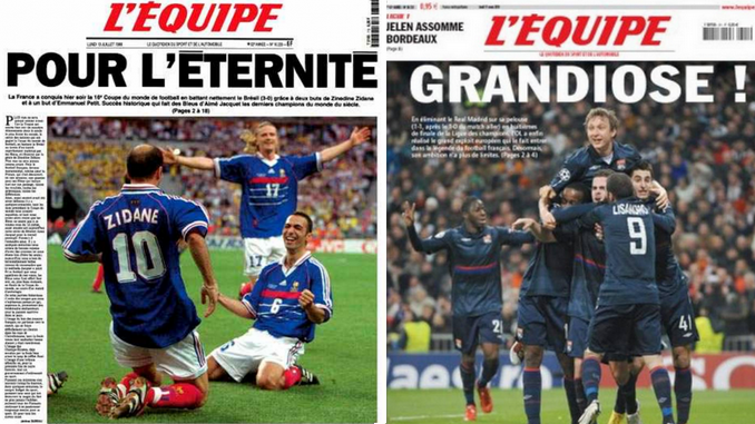 Deux unes de l’Equipe, où les médias français étaient pour des équipes françaises